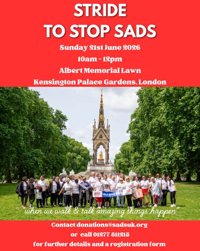 STRIDE to Stop SADS walk on Sunday 8th June at Kensington Palace Gardens